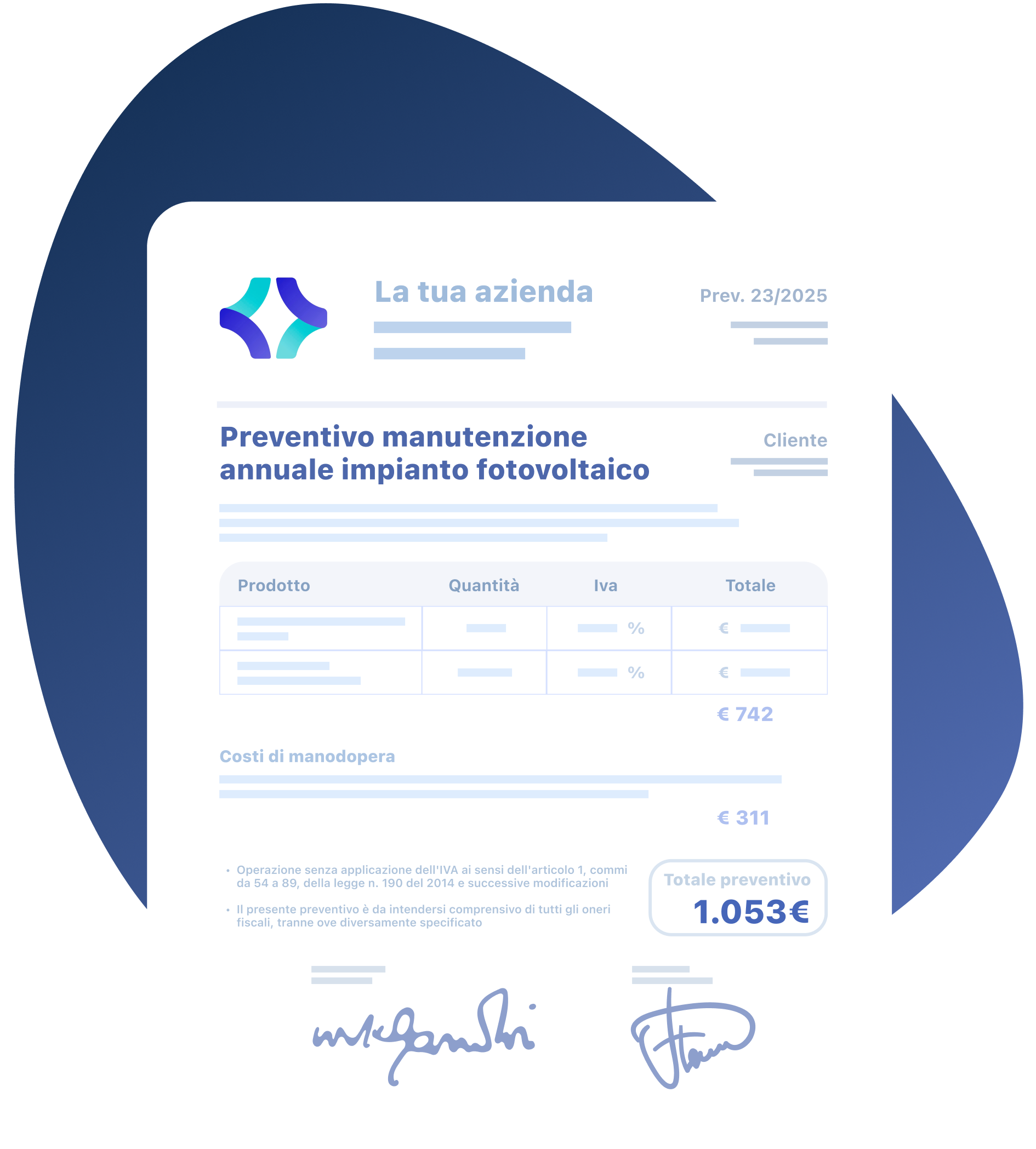 Crea e personalizza i tuoi preventivi con Lavorincloud in modo semplice e veloce! Collegali ai tuoi clienti e commesse, aggiungi firme multiple e inserisci tutte le diciture fiscali di cui hai bisogno.