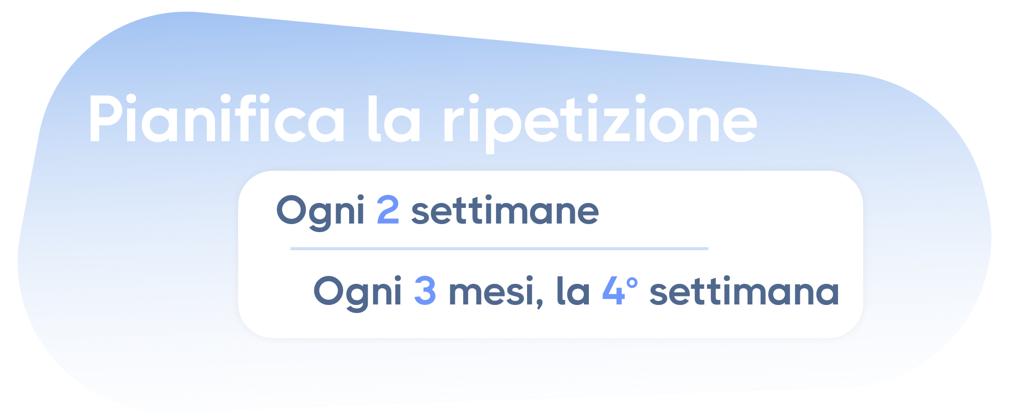 Sarà sufficiente inserire il periodo con le date di inizio e di fine della ripetizione, i giorni della settimana in cui vuoi inserire le singole attività, che verranno generate in automatico, e gli orari di inizio e di fine dell’attività per ciascun giorno.